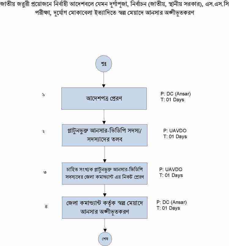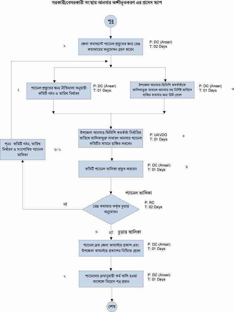 নির্বাহি আদেশে সল্প মেয়াদে আনসার অঙ্গীভূত করনের প্রসেস ম্যাপ